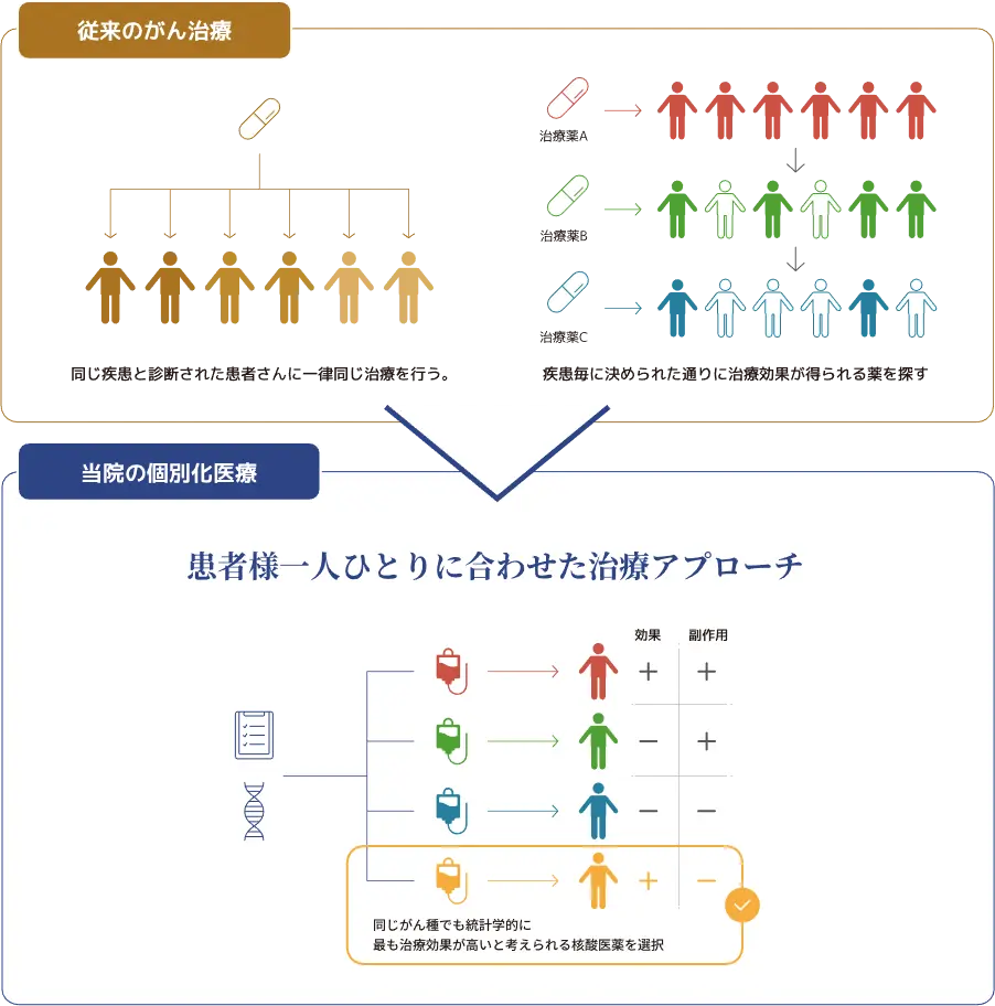 当グループでも、がん細胞がどのように増殖し、生き延びているのかを分析し、その性質に合わせて最適な核酸医薬を選択する個別化医療を実践しています。