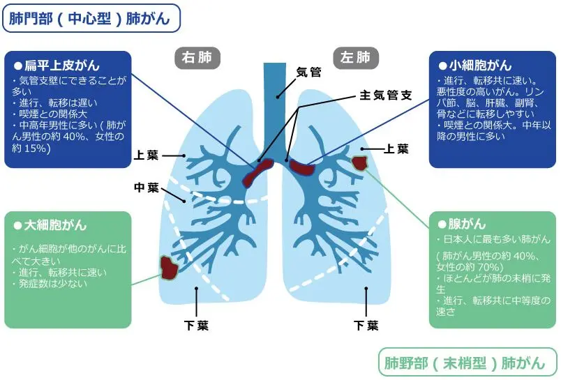 - 非小細胞肺がんの中で2番目に多い組織型で、喫煙との関連が強い